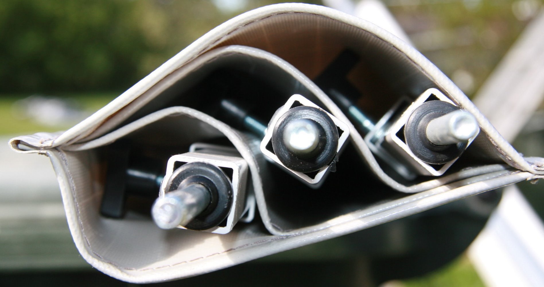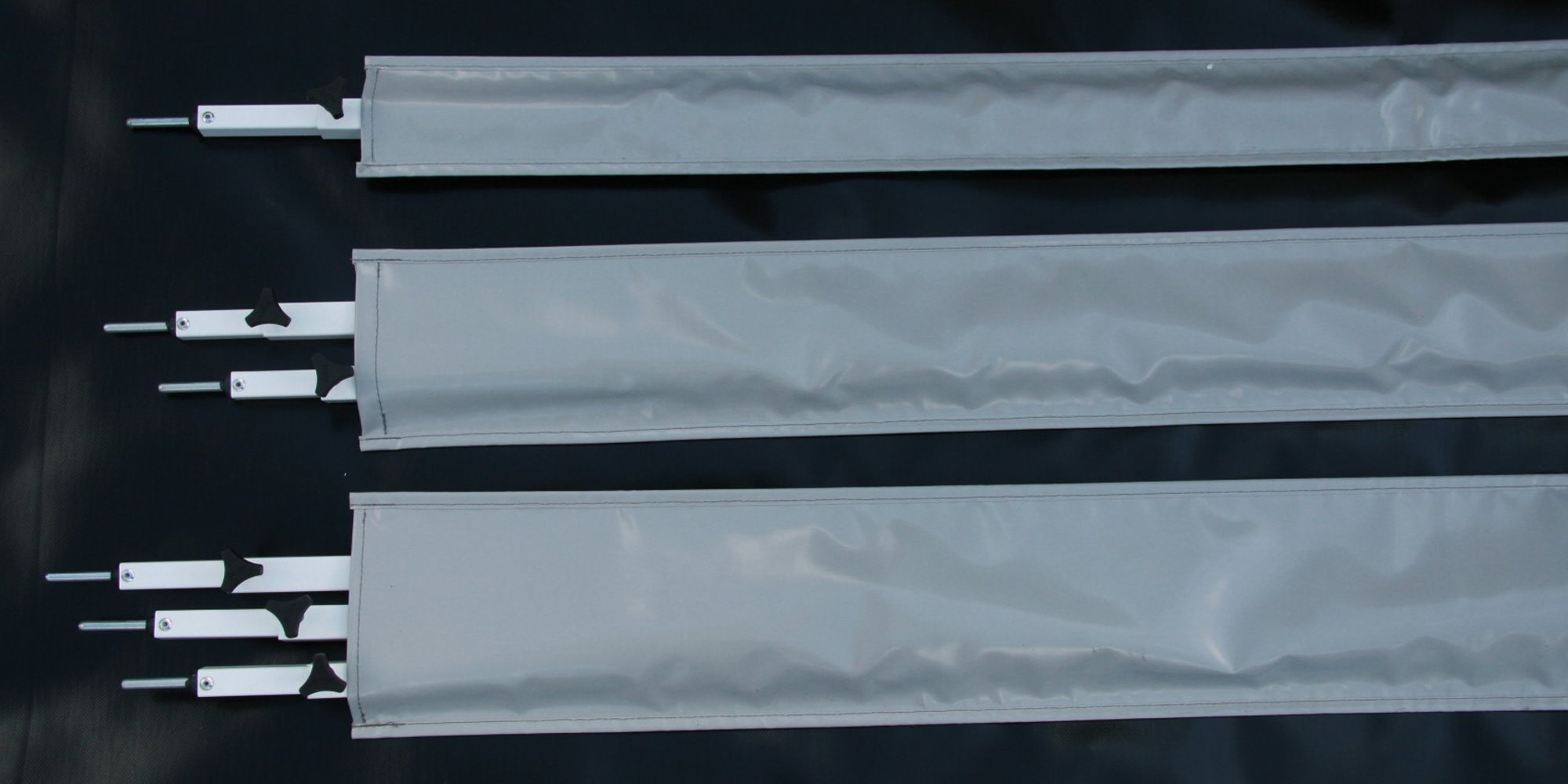 Heavy pvc material with divider walls in between each rafter to avoid contact of each other. Single, double and triple rafter cases available.